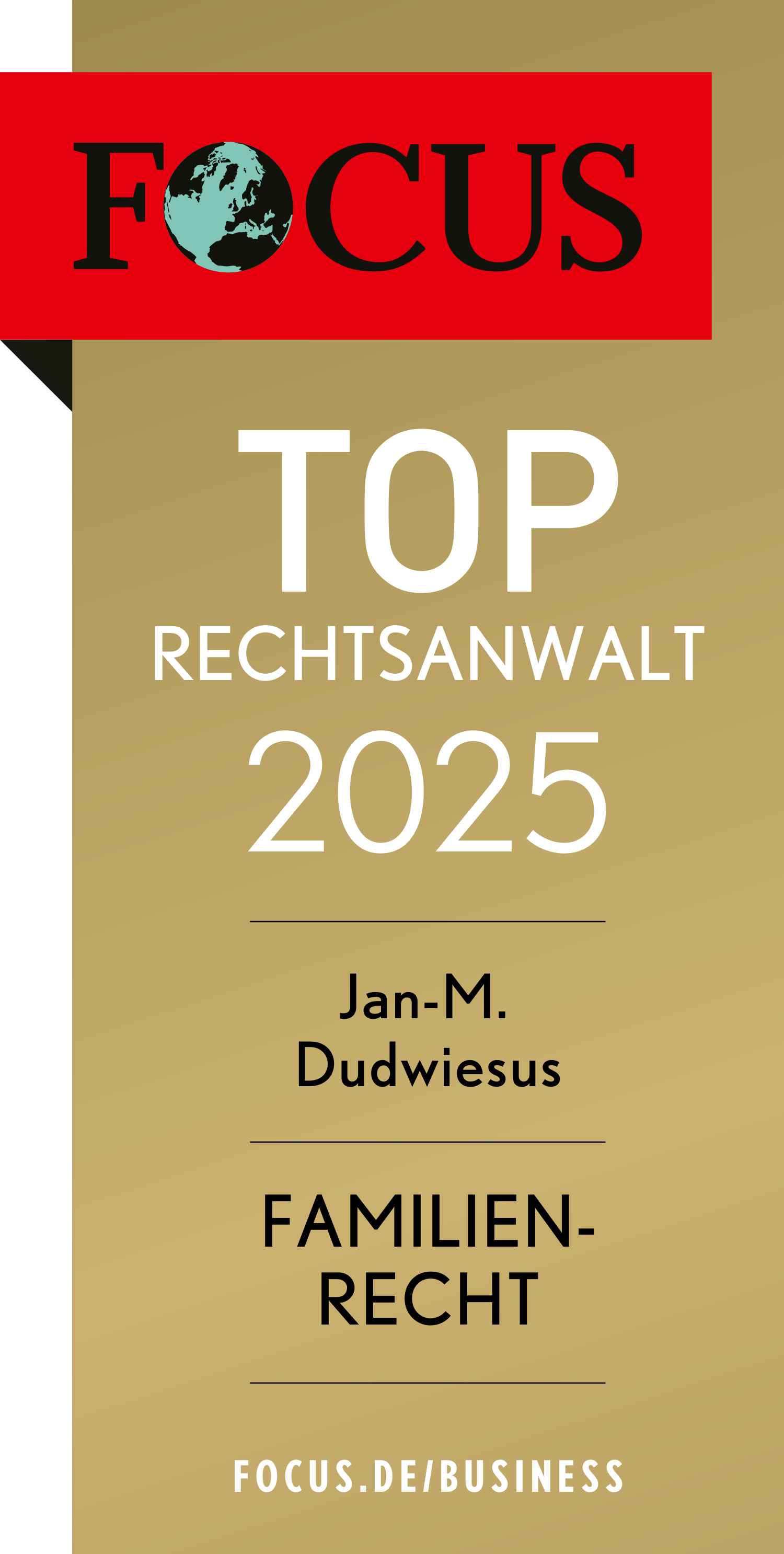 Im Jahre 2021, 2022, 2023 und 2024 wurde ich von dem renommierten Nachrichtenmagazin FOCUS in die Liste Deutschlands Topanwälte (2021) aufgenommen und im Familienrecht entsprechend empfohlen. *